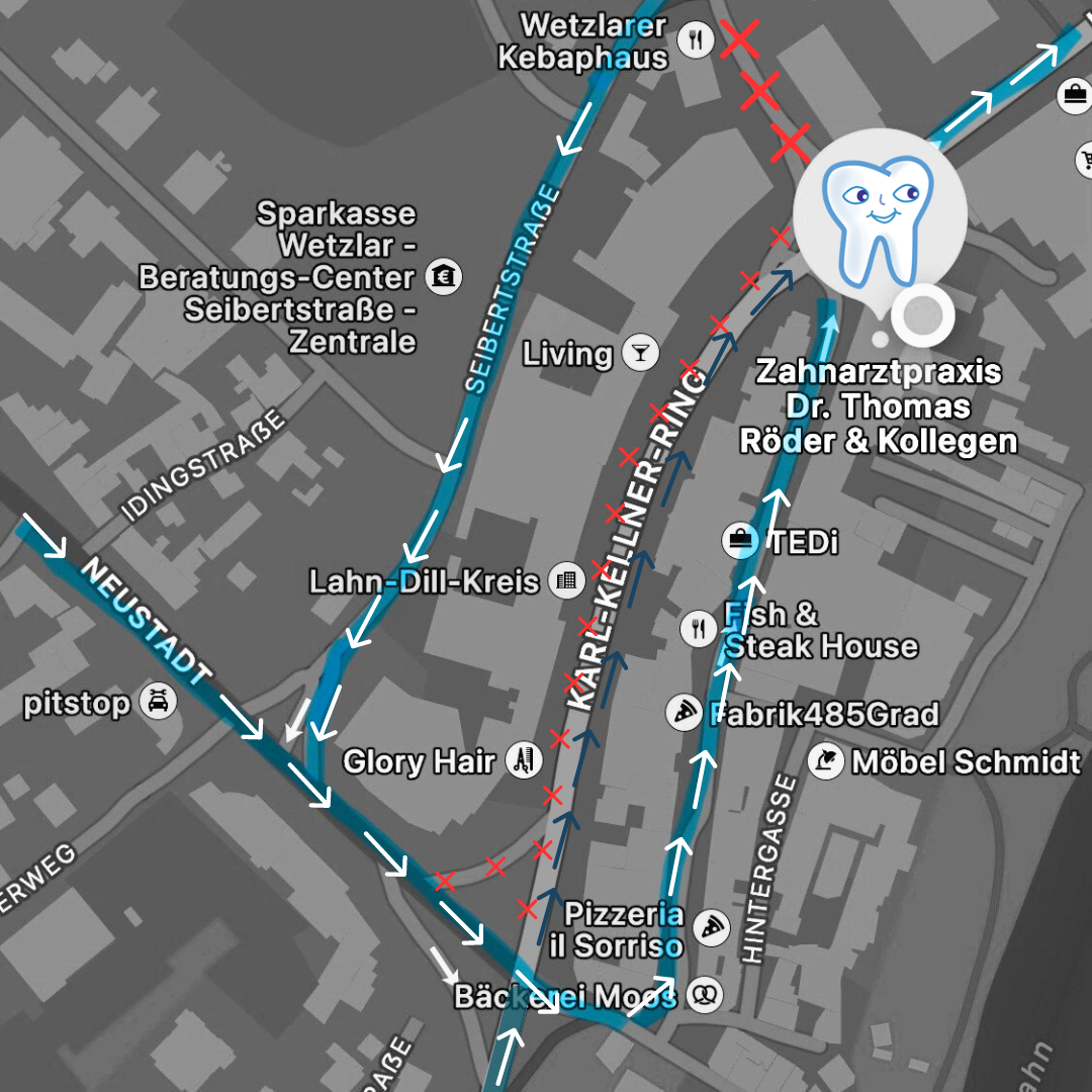 Bitte beachten Sie, dass nicht alle Navigationssysteme die aktuelle Sperrung im Karl-Kellner-Ring berücksichtigen. Die große Einbahnstraßenregelung bleibt bestehen, und der Ring ist halbseitig gesperrt. Als temporäre Lösung ist es jetzt erlaubt, von der Neustadt aus geradeaus über die Kreuzung in die Langgasse zu fahren.